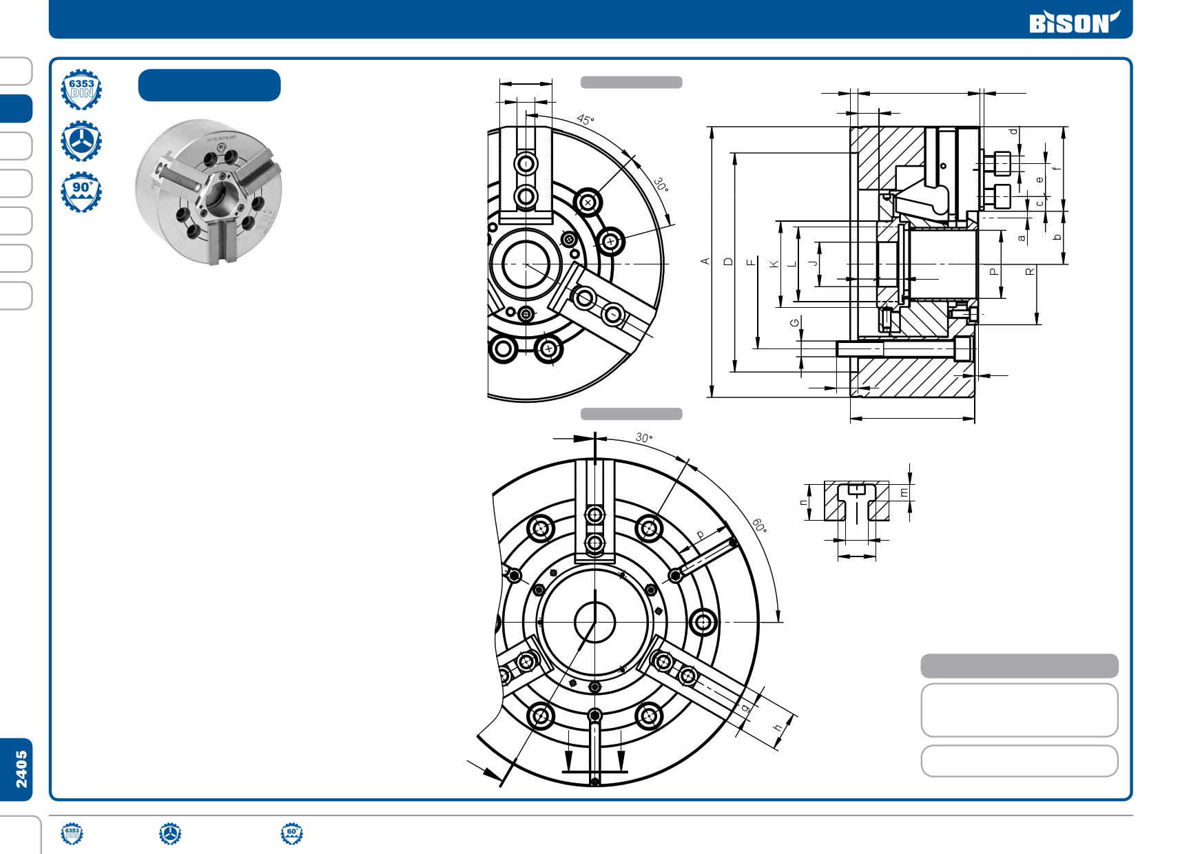 Механизированные токарные патроны с проходным отверстием 3-кулачковые зубчатое соединение 90°