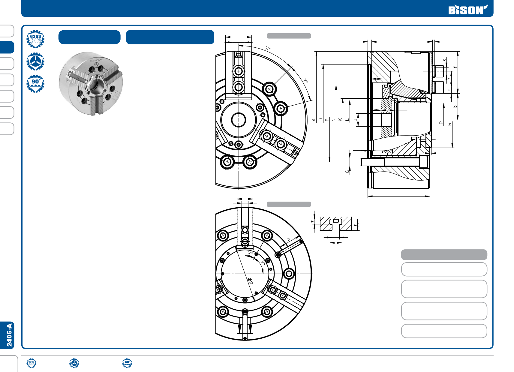 Uchwyty tokarskie z mocowaniem mechanicznym z przelotem 3-szczkowe Wielko kta zbkw 90°