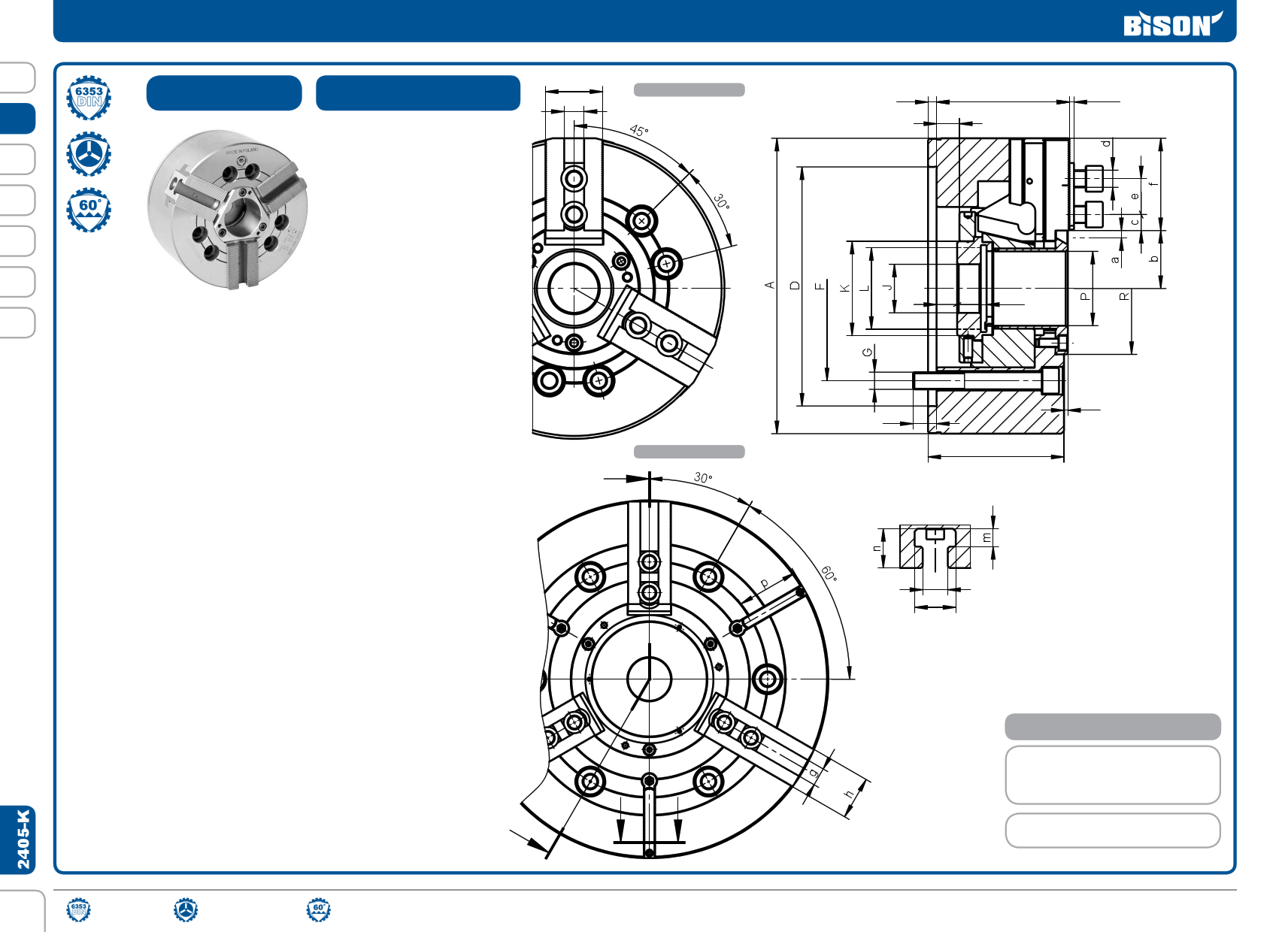 Механизированные токарные патроны с проходным отверстием 3-кулачковые зубчатое соединение 60°